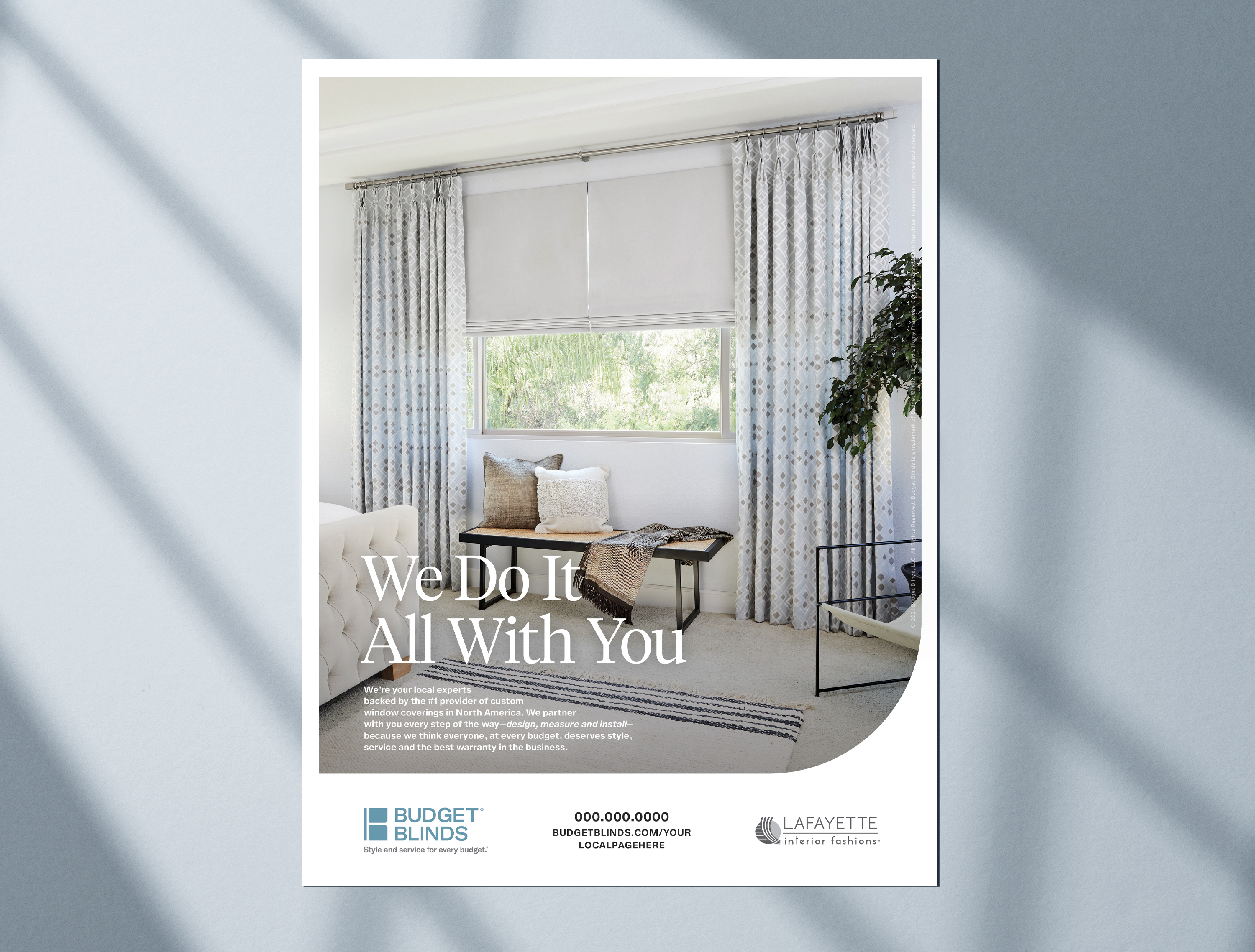 The flagship brand concept for a leading home service franchisor, specializes in window coverings, from automated shades to custom draperies and designer details. They believe in providing style and service for every budget, and are supported by a franchise network of over 1,200 territories in North America, including Canada and Mexico.